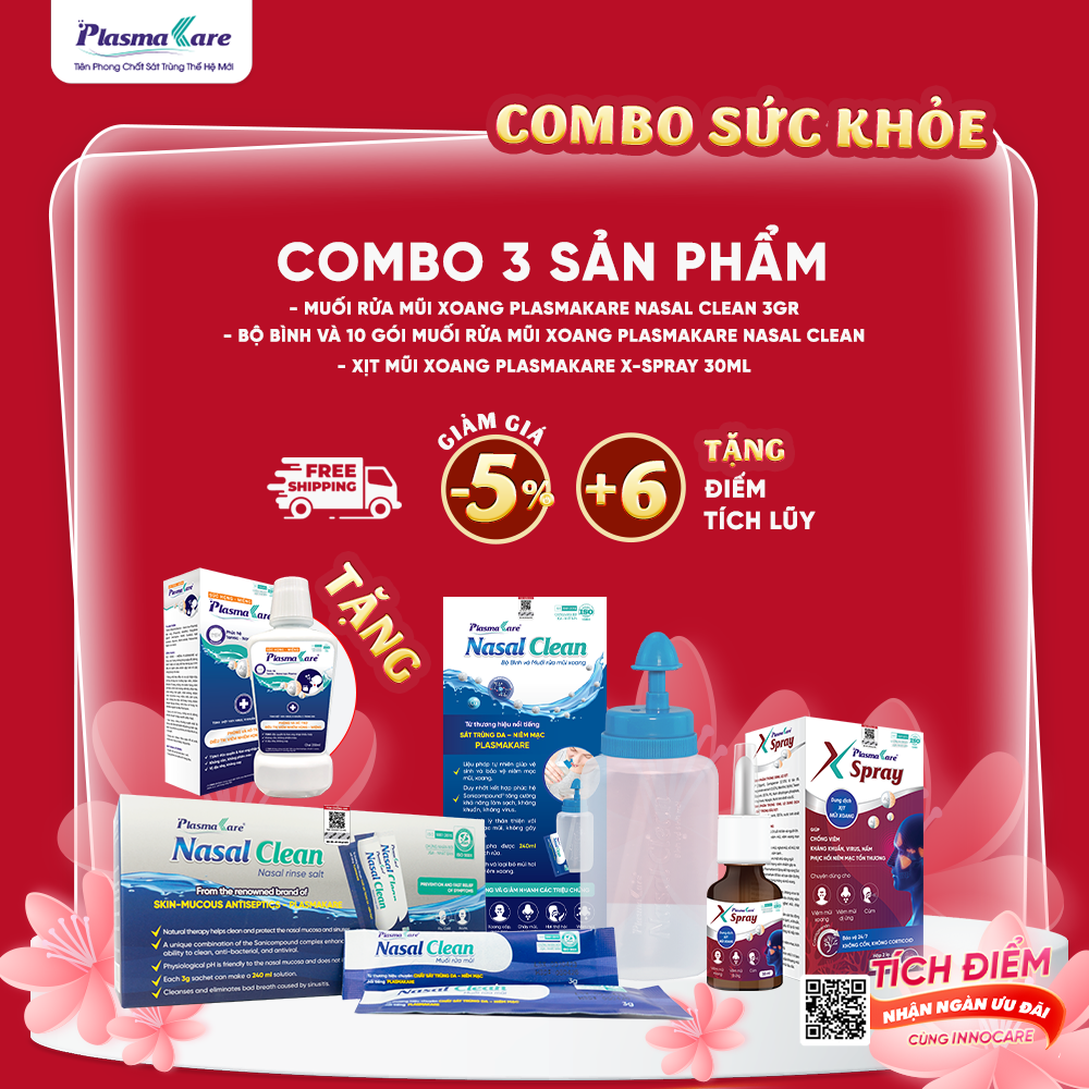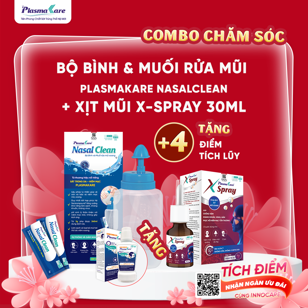 Tặng: 01 Súc họng miệng PlasmaKare 150ml hoặc 01 Xịt mũi xoang PlasmaKare 15ml