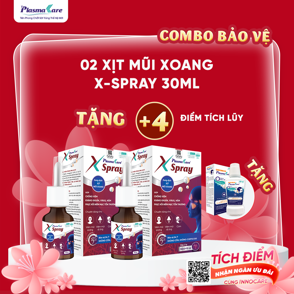 Tặng: 01 chai Súc họng miệng PlasmaKare 150ml hoặc 01 Xịt mũi xoang PlasmaKare 15ml